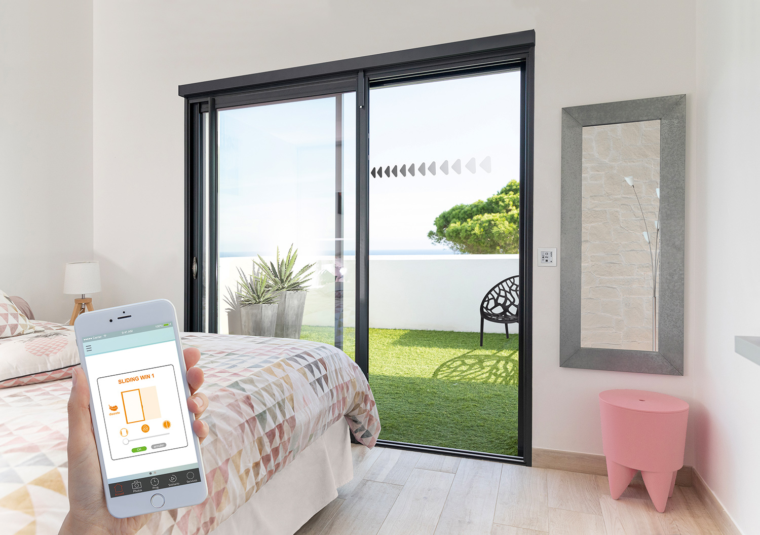 Bruno Barlet : Cette baie coulissante est automatisée et connectée. Elle est compatible avec Tahoma. Elle permet d’aérer son habitation en toute sérénité et de refermer à distance ses baies, mais également de créer une multitude de scénarios en couplant la fenêtre au chauffage, aux volets roulants, etc. Notre solution étant financièrement accessible au plus grand nombre, nous visons à terme un marché de masse pour le résidentiel, mais nous ciblons également les résidences seniors, le petit tertiaire ou encore l’hôtellerie. Nous avons peaufiné l’intégration de notre système, cela ne transforme ni la fabrication, ni la pose et le rendu est vraiment esthétique.