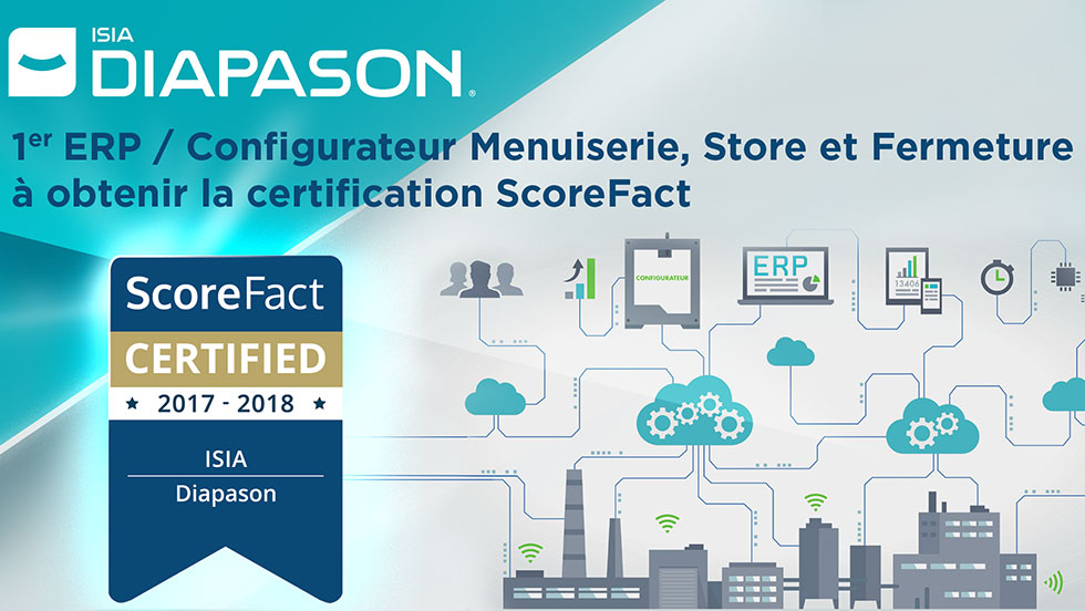 Isia vient de recevoir le Label ScoreFact™ Certified, l’un des plus exigeants d’Europe en matière de notation de fournisseurs de solutions IT. Il atteste de la satisfaction de ses clients, aussi bien vis-à-vis de la solution Diapason (ERP et configurateur technique n°1 pour la Menuiserie industrielle) que des services associés.