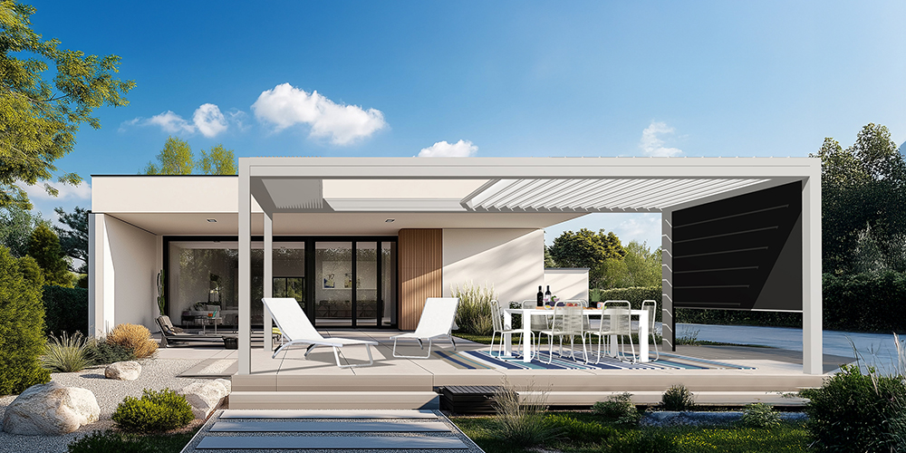 - La pergola OPEN’R3 (brevet déposé) et ses options de protection